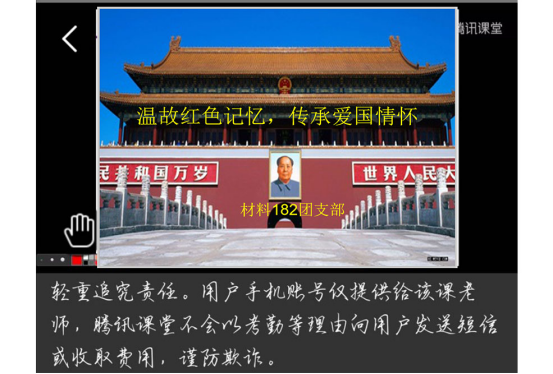 本网讯(材料与能源工程学院 文字/吕靖 图片/吕靖)2020年5月12日晚上七点为了让同学们了解历史文化、启迪心智,材料182班在腾讯课堂上组织开展了“温顾红色记忆、传承爱国主义”主题团日活动。