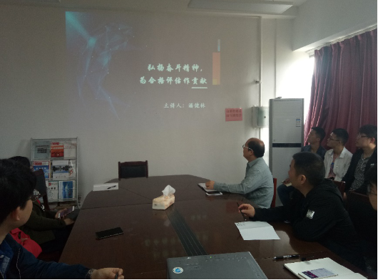 2019年4月19日上午,材料与冶金工程学院党总支书记潘健林同志以“弘扬奋斗精神,为合格评估作贡献”为主题给党支部党员上党课。
