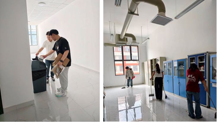 活动中,党员们迅速分成多个小组,分工明确、默契协作。他们手持抹布、扫帚、拖把等清洁工具,有条不紊地对实验室仪器设备、实验台柜及公共区域展开全面细致的清洁工作。将实验耗材仔细分类整理,贴上清晰的标签;把桌椅设备按照规范要求摆放得整整齐齐,确保实验室布局合理、便于使用。面对平日里容易被忽视的卫生死角,党员们更是发扬不怕脏、不怕累的精神,彻底清理,让实验室焕然一新。