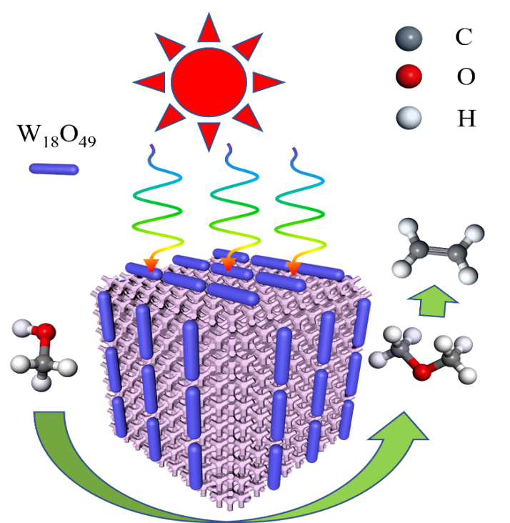 乙烯和丙烯等轻烯烃是聚合物和有机化学工业的重要原材料,这些化合物主要通过石脑油和柴油的蒸汽裂解工艺生产,这在很大程度上产生对原油供应的依赖。石油储量的减少和开采量的增加导致了轻质烯烃成本的增加,因此寻找轻烯烃替代合成路线至关重要。由酸性分子筛催化的甲醇制烯烃(MTO)是利用天然气、煤炭、生物质和二氧化碳生产烯烃和合成燃料的最成功的替代方法之一。我国丰富的甲醇产量、日益增长的烯烃需求以及原油资源的短缺促进了MTO工艺的发展。然而,MTO反应过程单位成本高、能耗大、二氧化碳排放量大。虽然甲醇脱水是放热反应,但仍需要250℃的温度才能活化,这加剧了化石能源的消耗。因此,有必须使用可再生和可持续能源驱动这一反应的进行。