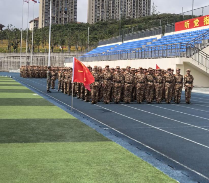 训练场上,2024级学子军训正如火如茶地进行着,党总支副书记夏雍对参训学生整齐的军姿和昂扬的士气表示高度赞许,充分肯定了学生在军训中展现出的良好军容军貌,并向全体新生表达了诚挚的问候与关怀,鼓励同学们继续发扬不怕苦不怕累的精神,遵守纪律,认真训练,将军训中学到的优良作风带入到今后的学习和生活中,并提醒同学们在训练中要做好防护措施,注意自身健康安全,圆满完成军训任务。