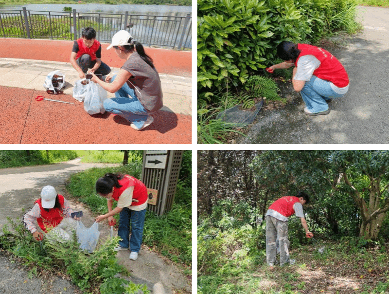 活动伊始,学院志愿者代表与社区负责人进行细致对接,明确社区卫生重点整治区域。随后,志愿者们分组领取钳子、分类垃圾袋、手套等工具,迅速投入清洁工作。现场分工有序、干劲十足:一组同学手持钳子,弯腰细致捡拾隐藏在草丛中的烟头、塑料碎片、废旧纸巾,连砖石缝隙里的细小垃圾也逐一清理;另一组同学则负责将分类收集好的垃圾转运至社区指定垃圾桶,确保“清理一处、干净一处”。尽管当日气温偏高,汗水浸湿了志愿者们的衣衫,但大家始终保持热情,没有一名同学中途退缩。经过近两小时的集中清理,社区公共区域环境显著改善,路面整洁有序,绿化带恢复了原本的生机,赢得路过居民的纷纷点赞。
