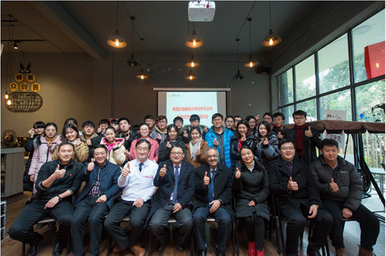 随着英国贝德福特大学副校长Ashraf Jawaid及各位代表步入众创园,各位同学激动的起立鼓掌,现场气氛热烈,中外合作班级张希同学还用流利的英语向各位领导致欢迎词。