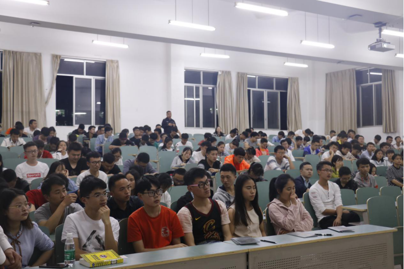 讲座伊始,由郭睿同学分享了自己的一次被骗的经历,同时也向各位同学介绍了一些诈骗的手段和几个真实发生的案例。接下来张天蓝警官也向大家讲述了以前自己受理过的案例,从案例中看到,被骗数额由几千到上万元不等,受骗者年龄段涵盖范围较广,其中年龄最小的只有十几岁,最大的高达七十多岁。最后,张天蓝警官提醒同学们大学生要加强自身修养,同时注意保护好自己的个人信息,不贪小便宜。