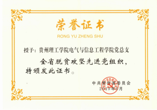在中国共产党成立98周年之际,7月1日上午,全省脱贫攻坚“七一”表彰大会在贵阳举行。本次大会是在全省“不忘初心、牢记使命”主题教育扎实开展之际,在省委十二届五次全会再次吹响深入推进农村产业革命、攻克深度贫困最后堡垒、坚决夺取脱贫攻坚战全面胜利“冲锋号”的关键时刻召开的一次会议。大会对脱贫攻坚工作中涌现出的一批甘于奉献、苦干实干、引领带动作用强的全省脱贫攻坚优秀共产党员、优秀基层党组织书记、优秀村第一书记等先进个人和先进党组织进行隆重表彰。我院党总支被授予全省脱贫攻坚先进党组织称号。
