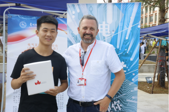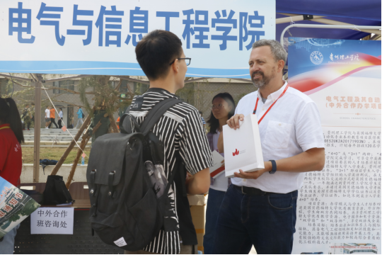 我院电自中外合作办学专业外教对于此次迎新也同样给予了大力的支持与帮助,专注且幽默的和每一位新同学交流,并为每一位前来报到的学子都送上了一份小礼物,为她们送去祝福,鼓励小萌新们要积极向上努力学习。