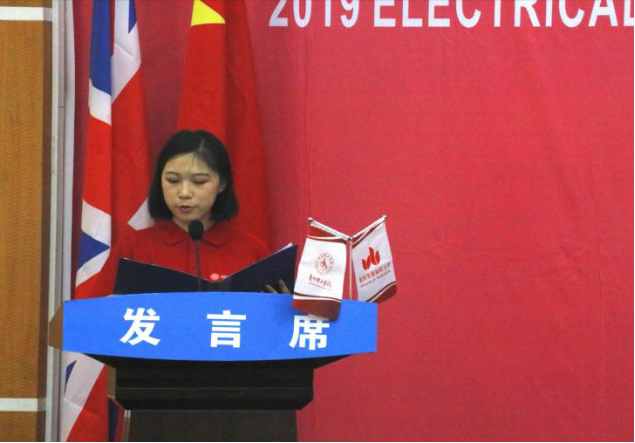 电气与信息工程学院院长蒋学勤、贝德福特大学国际处处长Harry Wang 、教师代表马佳、老生代表张希、19级学生代表许逸然分别发言,新生代表向双方校领导赠送了中外合办班班服。