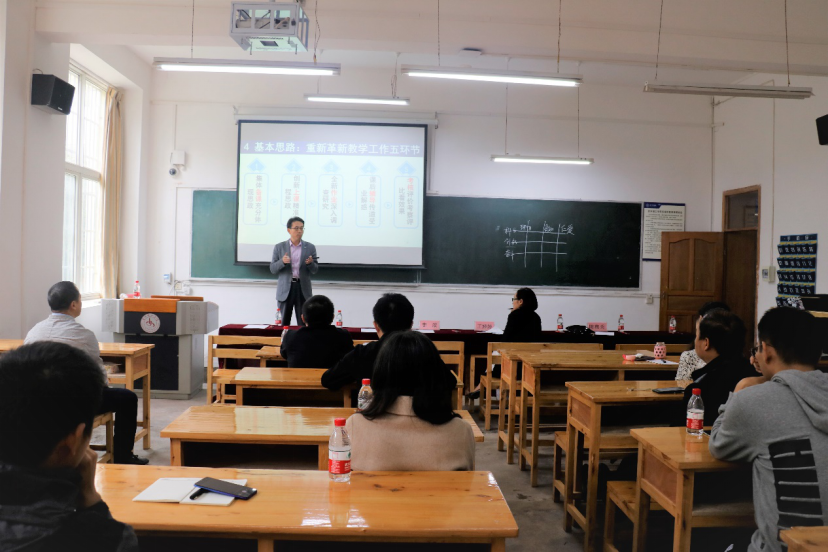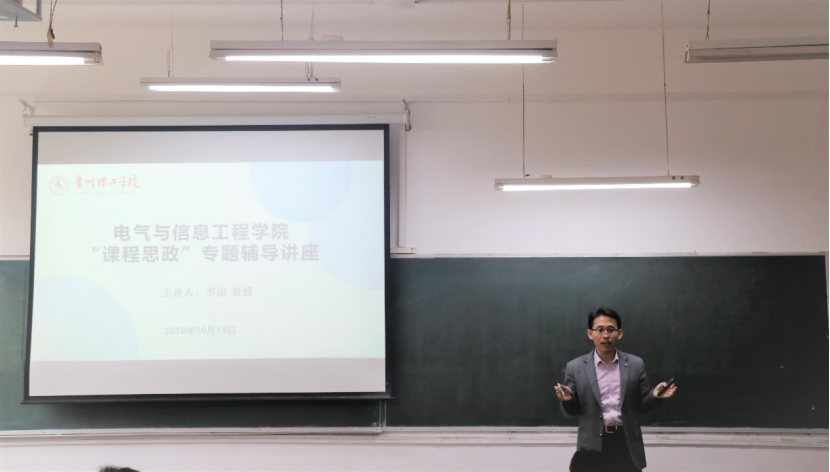 本网讯(电气与信息工程学院 刘丹)为进一步提高我院教书育人的本领和“课堂思政”的建设能力,积极发挥“课堂思政”的效应。10月19日,我院于一教108开展了以“课堂思政”为主题的专题辅导讲座,主讲人为李滚教授。出席此次讲座的有我院党总支书记王婷婷、院长蒋学勤、副院长龙飞、副院长张均、党总支副书记周新国,教研室全体老师参加讲座。