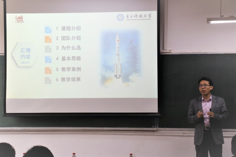 李滚教授以《航空航天概论课程》为例,从课程介绍、基本思路以及教学案例等方面解释了“课堂思政”的教学优势。他指出:1.课程思政的五个要数分别是,贯通中国元素、体现文化元素、融合四川元素、渗透成电元素、引入空天元素。这五个要数从后往前看就是个体、集体、故乡、民族、国家,即要以小见大的去看问题。2.要重新革新教学工作的五个环节,即备课充分体现思政、上课精准课程思政、作业深入调查研究、课后辅导传道授业解惑、考察评价看效果。3.通、融、润,就是让学生成为向学的生命,充满创新和探索未知世界的精神气象。讲座最后,李滚教授又以“共和国勋章”张家栋为例,简述了课堂思政的意义。