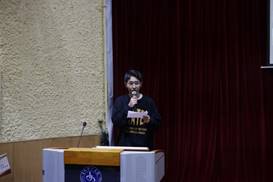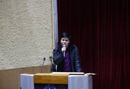 她首先对同学们的工作给予了高度的肯定,为同学们对学院各项活动的顺利开展所做出的贡献表示赞扬,同时也对学生会全体成员的辛苦付出表示感谢。同时强调同学们未来的工作应围绕思政教育核心和学风建设重点,开展具有学院专业特色的品牌科技活动,培养团总支学生会全体成员的家国情怀和爱校荣校意识;同时积极学习党的十九大精神和习近平总书记重要讲话精神,增强家国情怀和爱校荣校意识;在将来的工作中,希望同学们加强各部门的配合,一如既往的开展有意义的活动,积极配合学院开展学生工作。