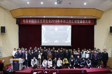 (本网讯 电气与信息工程学院高祥/文)2019年12月13日晚,我院团总支学生会2019年度工作总结暨表彰大会于逸夫小礼堂顺利举行。学生科顾英老师出席本次总结大会,学生会全体成员、我院各班学生代表参加会议。会议由团总支学生会执行主席吴春晖和王澳主持。