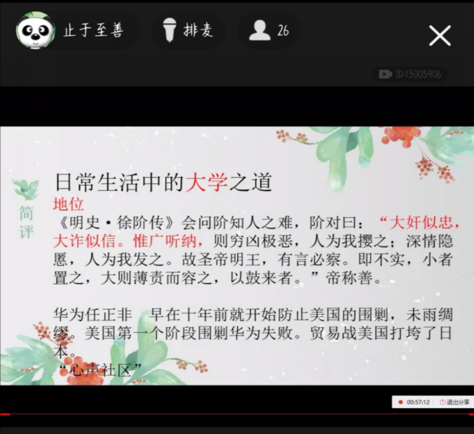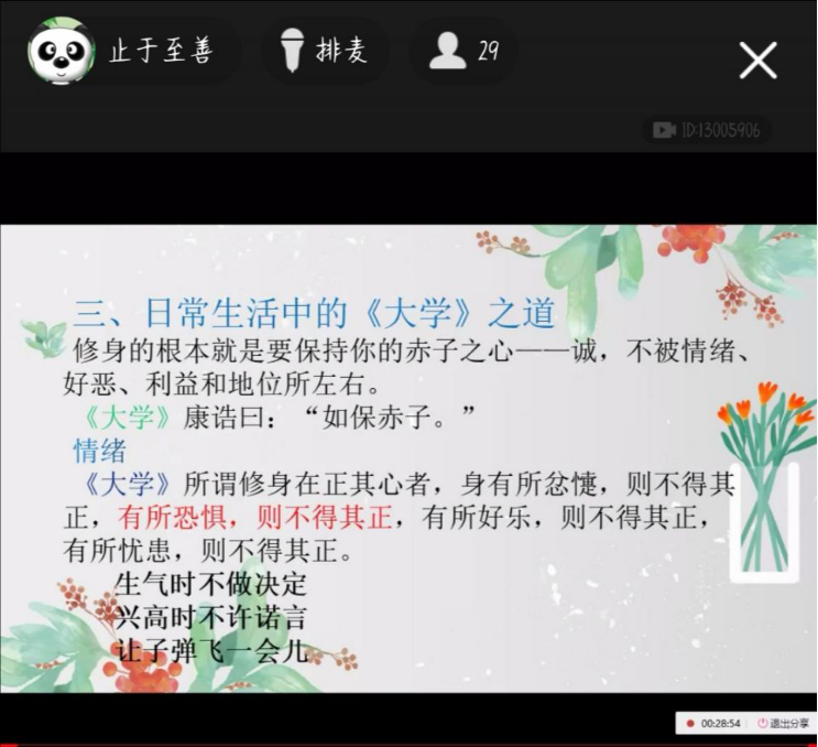 云端相约道德讲堂,我院开展道德讲堂分享会——《大学》与智慧人生