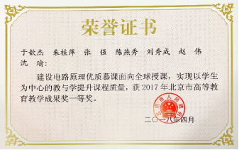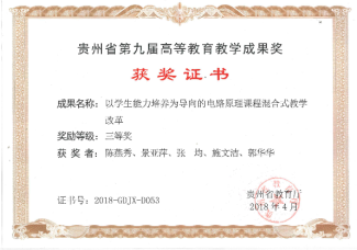 2017年-2019年,教学改革先后获2018北京市高等教育教学成果一等奖(与清华大学联合申报)、贵州省第九届教学成果三等奖、贵州理工学院教学成果特等奖、教育部在线教育研究中心优秀项目奖等诸多奖项;获评中国高校电工电子在线开放课程联盟线上线下精品课程。