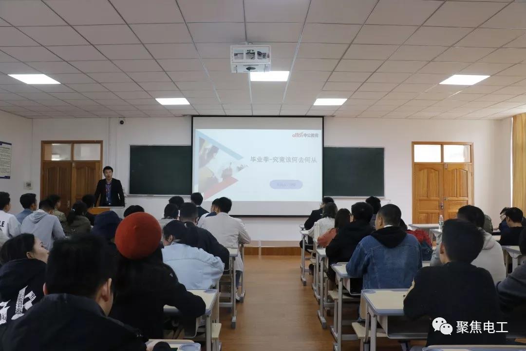 本网讯(电气与信息工程学院 文/孟丽丽 图/马晓雨)为进一步推动我院学生就业指导工作,帮助毕业生适应就业形势、熟悉就业政策、转变就业观念、增强择业意识,促进毕业生充分就业,11月8日下午14:00,由我院举办的“把握你的生涯发展机会”就业指导专题讲座于2教311室顺利开展。本次就业指导讲座特邀中公教育余盛主任主讲,2020届应届毕业生参加了本次讲座。