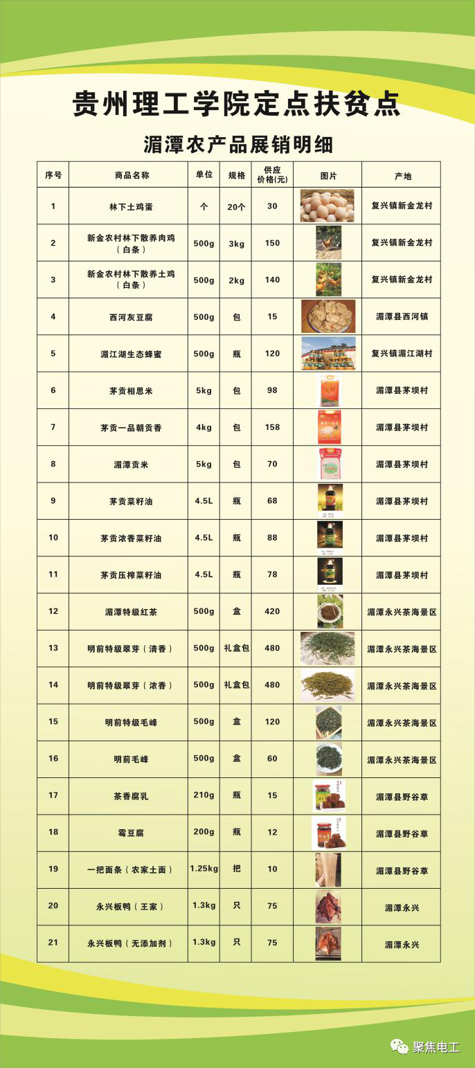 本网讯(人工智能与电气工程学院 程星晶)为深入贯彻习近平总书记在决战决胜脱贫攻坚座谈会上重要讲话精神,在坚决打赢疫情防控阻击战的同时,大力开展消费扶贫行动,贵州理工学院脱贫攻坚暨农村产业技术革命工作专班、后勤管理处党总支、人工智能与电气工程学院党总支计划通过“完美校园”线上预定和线下现场销售形式,于2020年6月5日(星期五)上午9:00—17:00在三食堂开展“攻坚脱贫,你我同行”湄潭地区农产品专场展销活动。