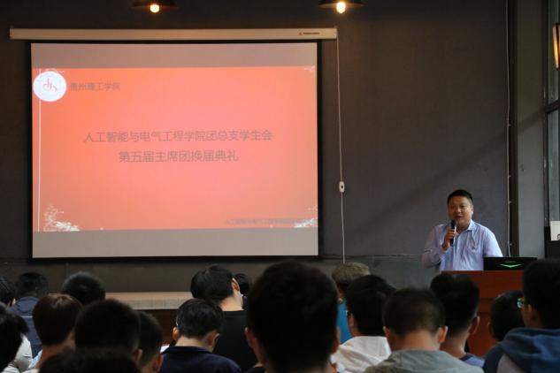 本网讯(人工智能与电气工程学院 文/董云华 杨飘 图/龙河平)2020年9月17日中午,我院团总支学生会第五届主席团换届大会在蜂巢众创园举行,党总支副书记周新国、学生科全体老师出席会议,学院团总支学生会主要学生干部、各班班长团支书参加本次大会。会议由王澳、杨晨煜2位同学主持。