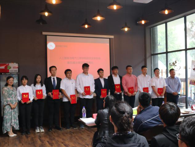 党支部副书记周新国老师、学生科顾英老师给各部门部长颁发聘书并合影留念。