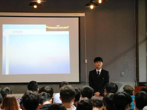 王宗琪代表第四届主席团做工作汇报。他总结了学生会在过去一年工作里的所做所得所感,并感谢学院学生会提供的这个平台,让他在这一年的工作学习中成长,收获了很多值得珍藏一生的宝贵精神财富,并给同学们分享了自己如何做好学生工作的一些个人经验。