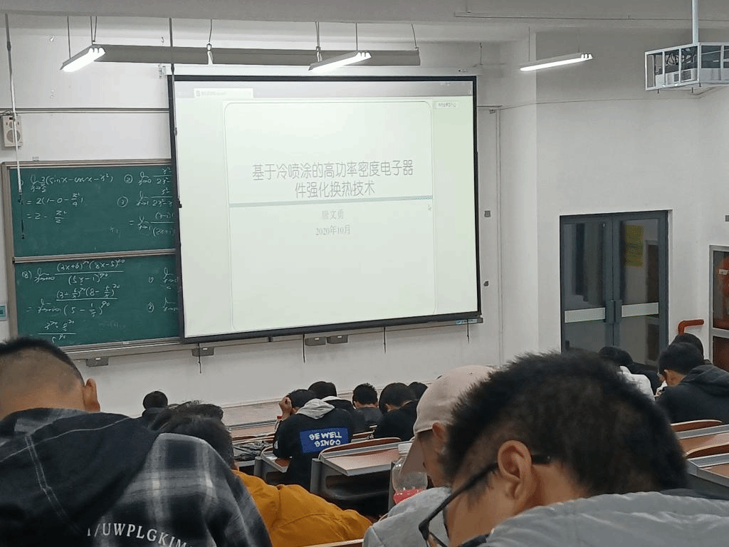 本网讯(人工智能与电气工程学院) 2020年10月23日,电气工程及其自动化专业全体20级新生在贵安校区天宫楼G2108教室观看由我院开展的“基于冷喷涂的高功率密度电子器件强化换热技术”讲座——“启梦?求知?成长”之科研启蒙大讲堂。本次讲座由我院副教授唐文勇担任主讲人。