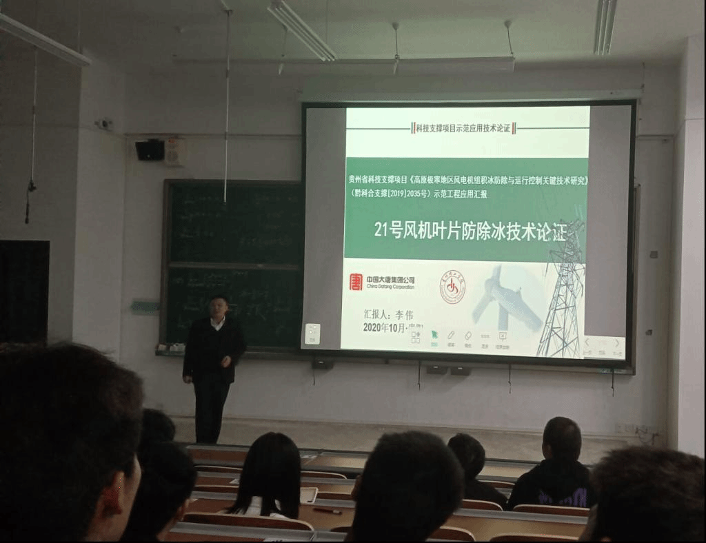 本网讯(人工智能与电气工程学院)10月30日晚19:00我院于贵安校区2108教室开展了以“21号风机叶片放除冰技术论证”为主题的科研启蒙大讲堂系列讲座。我院电气工程及其自动化专业全体学生参加讲座,讲座由高级工程师、博士李伟主讲。