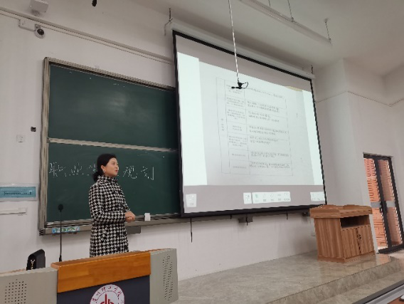 讲座伊始,沈老师向同学们介绍了职业生涯规划的基础知识,她提到:大学生的职业生涯规划应从早开始,从心出发,职业生涯规划的目的主要是帮助个人真正了解自己,为自己订下事业大计。并表示,同学们应对自己有一个明确精准的定位,才能对未来有充足的准备,在大学四年不虚度光阴,充实自己的能力,只有这样才能在日益激烈的竞争中找寻机会找到自己前行的方向。