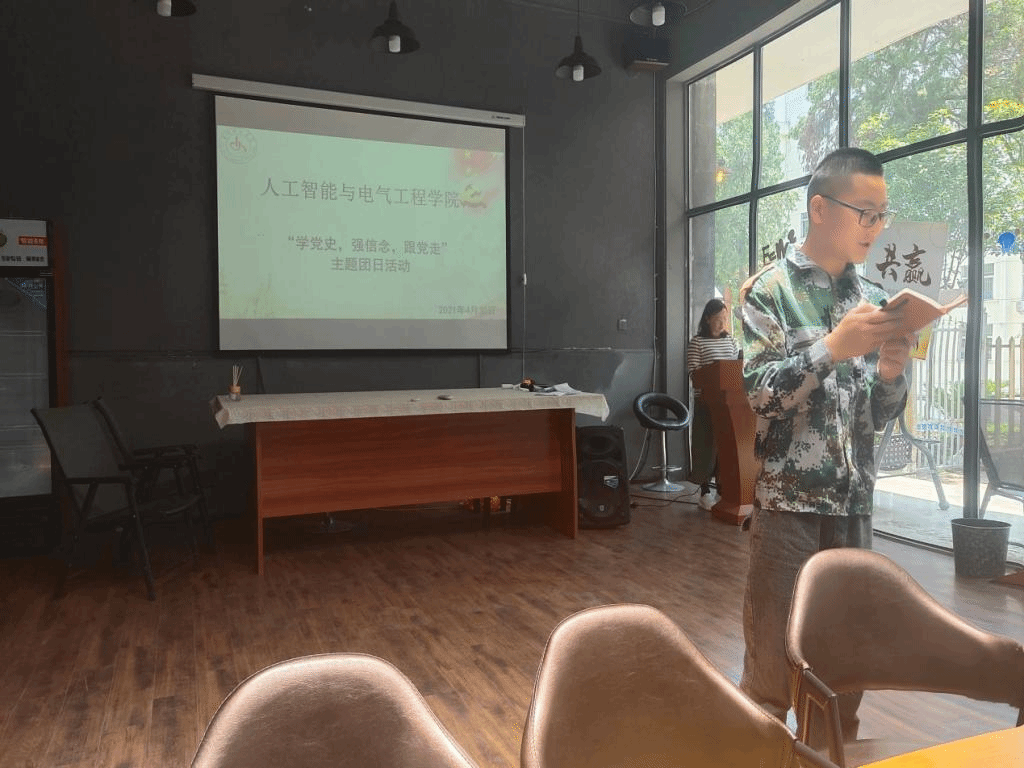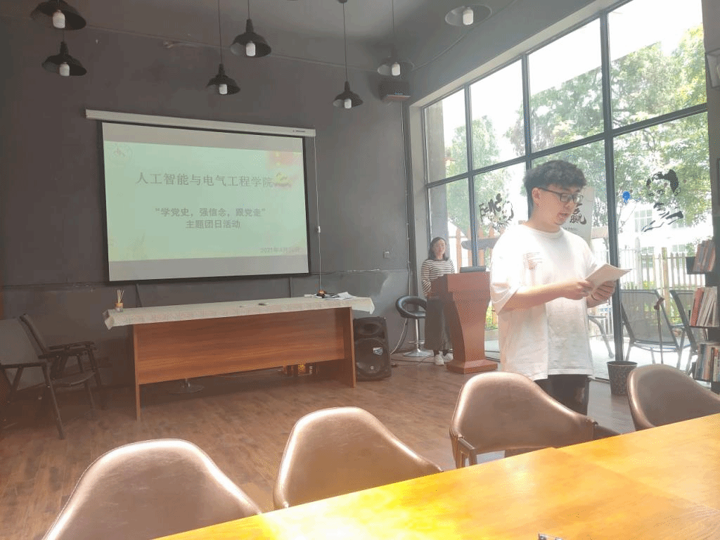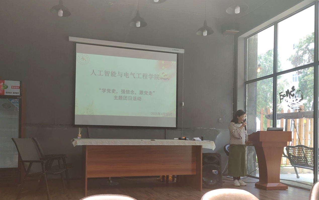 4月30日中午,人工智能与电气工程学院在蜂巢开展“学党史强信念跟党走”主题团日活动,学生会全体学生干部和班级团支书、班长参加此次主题团日活动。团总支顾英老师主持此次主题团日活动。