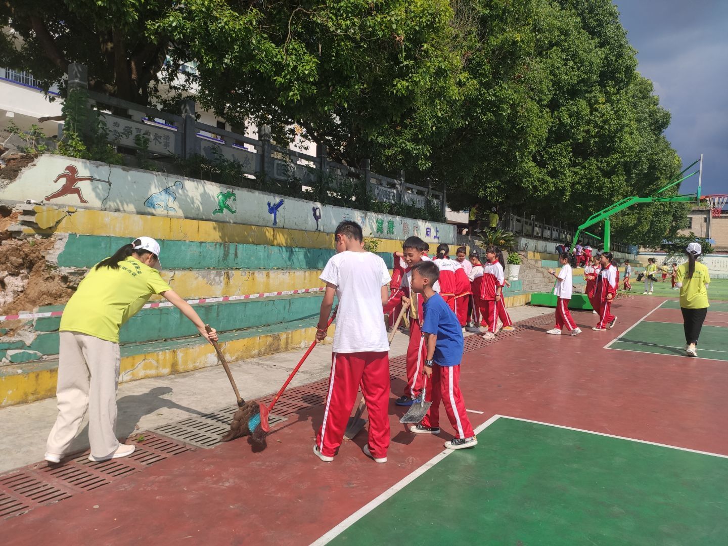活动时间选择在了同学们最后一节课时开展。下课后,同学们在各班主任的带领下集合完毕后。各班班主任将同学们分为几个小组,再由各支教老师的小伙伴带领各小组到划定的清洁区进行清扫。
