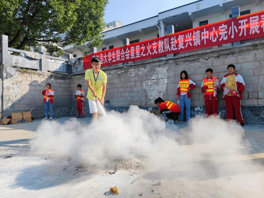 7月31日,支教团队在复兴镇中心完小开展“安全教育”宣讲+演练活动。具体包括交通安全、饮食安全、游泳安全、消防安全等孩子们可能遇见的多种危险。