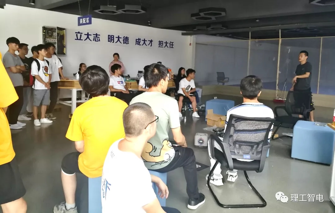 活动开始,由马玉龙老师带领的机器人团队成员自动化191刘江波同学围绕机器人团队组成情况、机器人比赛赛制、参赛准备等方面为同学们进行介绍,刘江波同学还为同学们分享了自己参赛的心路历程,参赛中的感人故事,鼓励同学们要有不怕吃苦、持之以恒、敢于创新的精神,并欢迎有兴趣的同学积极加入到机器人团队来。
