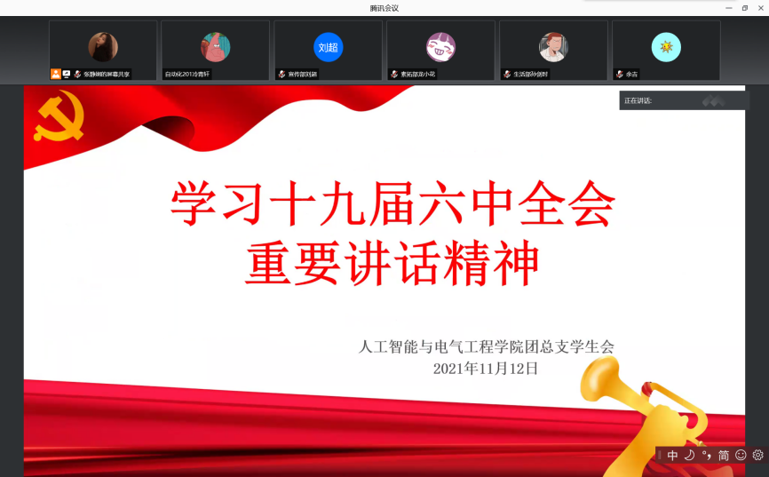中午13时,我院团总支顾英老师第一时间组织团总支学生会全体学生干部通过线上会议学习领会十九届六中全会重要精神,深受鼓舞,迅速掀起讨论热潮。