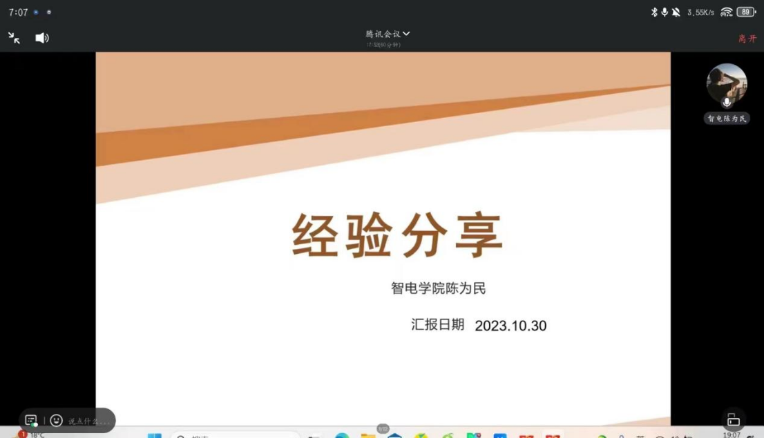 为加强学院学风建设,鼓励同学们积极主动学习,2023年10月30日晚上19点,人工智能与电气工程学院以线上会议的形式对2022、2023级全体同学开展了一次学习经验交流会,会议由我院20级陈为民和薛濛同学作学习经验分享。