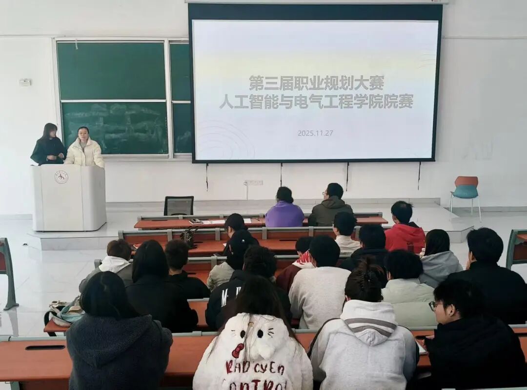 为助力学生科学规划大学生涯、提升职业认知与就业竞争力,2025年11月27日,人工智能与电气工程学院于睿知楼324教室隆重举办职业规划大赛院级选拔赛。全院7名同学参与决赛,学生科沈洁、吴亚东、王洁三位老师担任评委。