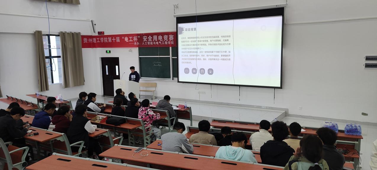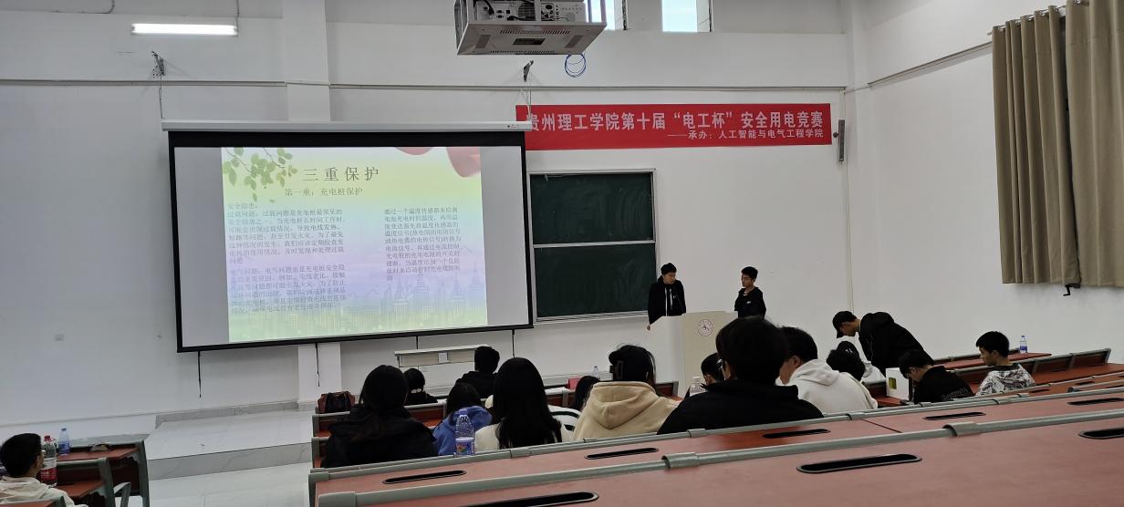 近日,贵州理工学院第十届“电工杯”安全用电竞赛在C02学院楼B106和118教室成功举办。此次竞赛由人工智能与电气工程学院承办,主题为“安全用电,智能未来”,旨在提高同学们对电力系统发展的认知,增强安全用电的意识。