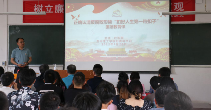 为了在青年学生的心中种下廉洁的种子,2022年4月28日,学校纪委副书记叶栋国为人工智能与电气工程学院师生上了一堂题为“正确认清反腐败形势 ‘扣好人生第一粒扣子’”的廉洁教育党课,学院党政领导班子全体成员,全体师生党员、预备党员、发展对象以及入党积极分子近200人参加。