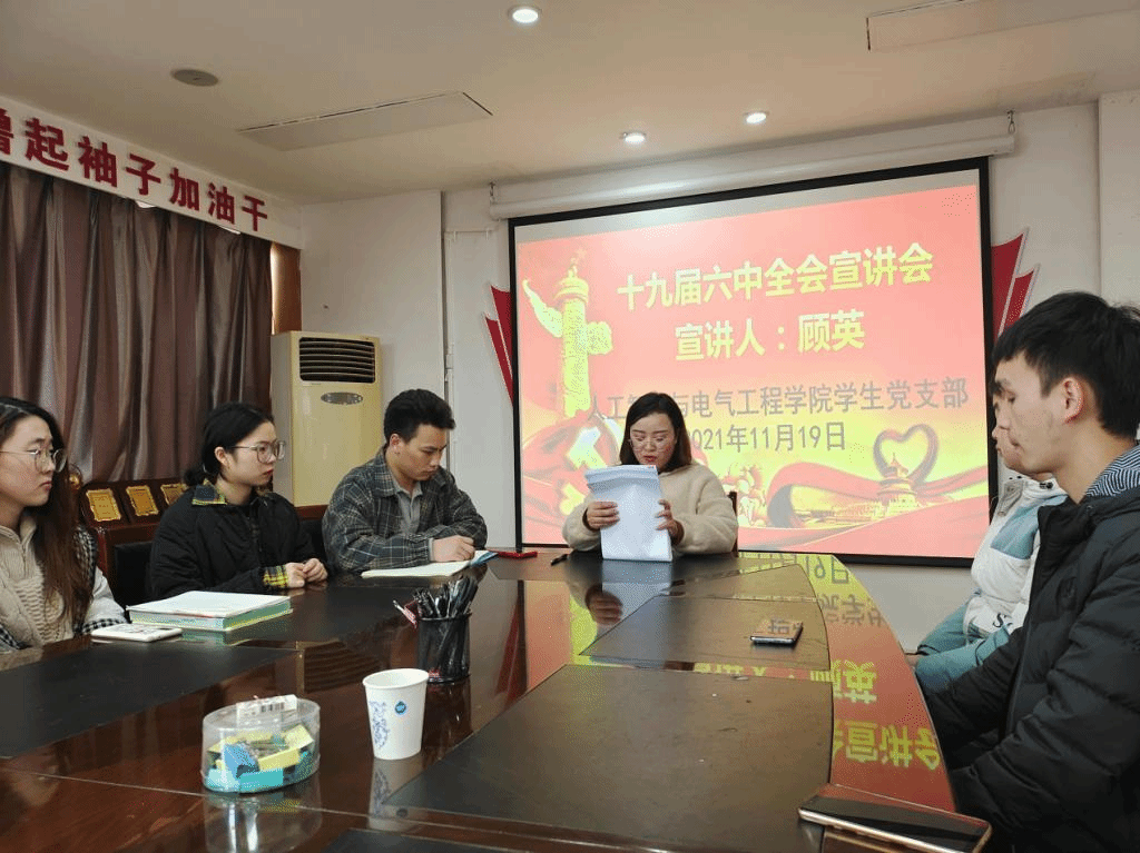 本网讯(人工智能与电气工程学院 文/孟丽丽 图/郑玉娇)为深入学习贯彻十九届六中全会精神,11月19日,人工智能与电气工程学院学生党支部于主楼723会议室组织开展“学习中共中央中国足球彩票党的百年奋斗重大成就和历史经验的决议”主题党日活动,本次会议由学生党支部书记郑玉娇主持,学生党支部全体党员参会。