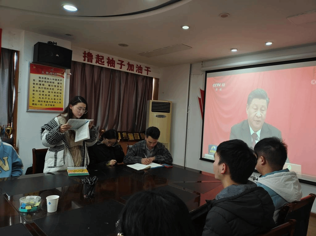 随后,郑玉娇老师组织支部全体党员观看党的十九届六中全会新闻发布会,学生党员同志发表学习心得,学生党员孟丽丽表示:“全会中提到的八个字令我印象深刻:不忘初心,方得始终。作为一名中共预备党员、新时代青年学子,一定牢记习近平总书记的嘱托,紧跟习近平总书记的步伐,以积极向上、担当作为的精神风貌,勇立潮头、争做先锋,让青春之花绽放在祖国最需要的地方。”学生党员陈鹏表示:“通过对党的十九届六中全会的学习,我对中国共产党人不畏牺牲、埋头苦干、勇毅前行的精神充满崇高敬意,这些精神激励着共产党人创造了党和国家的百年辉煌。我们党全面总结党的百年奋斗重大成就和历史经验,体现了我们党牢记初心使命、继往开来的自信和担当。正值“两个一百年”交汇之际,作为一名中共预备党员,作为一名新时代大学生,我们应当不负韶华,接续奋斗,努力学到真本领,为实现中华民族伟大复兴奉献青春力量。”