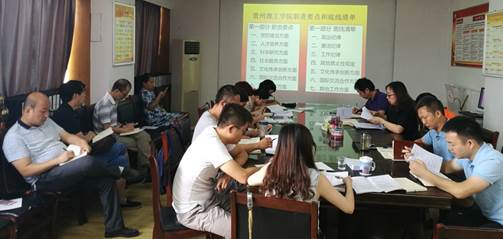 活动中,教师党支部书记郭华华带领全体党员对党章党规、贵州理工学院职责和底线清单进行了学习。全体党员就如何尽职责、守底线进行了讨论。