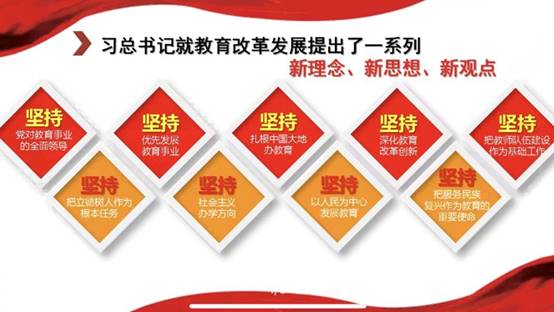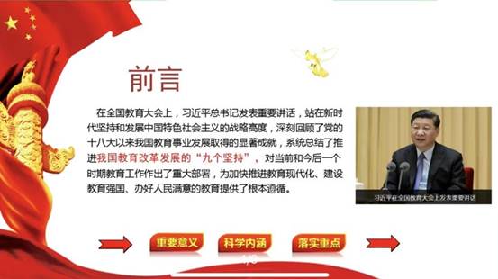 党课主要内容包括三个方面:教育改革发展“九个坚持”的重要意义、“九个坚持”的科学内涵以及“九个坚持”的贯彻重点。“九个坚持”深刻回答了培养什么人、怎样培养人、为谁培养人这一根本问题,思想深刻、内涵丰富,是我们党对我国教育事业规律性认识的深化,是我们党在实践基础上的理论创新成果,是习近平新时代中国特色社会主义思想的重要组成部分,来之不易,必须始终坚持并不断丰富发展。