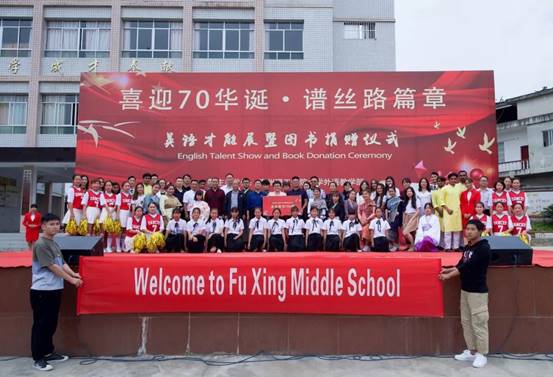 2019年9月25日,由贵州理工学院大学外语教学部主办,贵州理工学院国际教育处、贵州理工学院经济管理学院协办的英语才能展暨图书捐赠活动在湄潭县复兴中学举行。校领导曾羽、胡兴灿,复兴镇相关领导,复兴中学校长任旭出席活动。