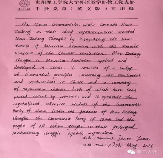 (袁小松老师手抄英文版《党章》作品)