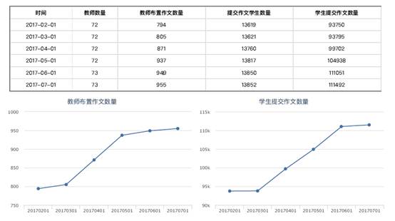 2.学生共提交作文111462篇(其中提交教师布置的作文103552篇,自主提交题库的作文7910篇);