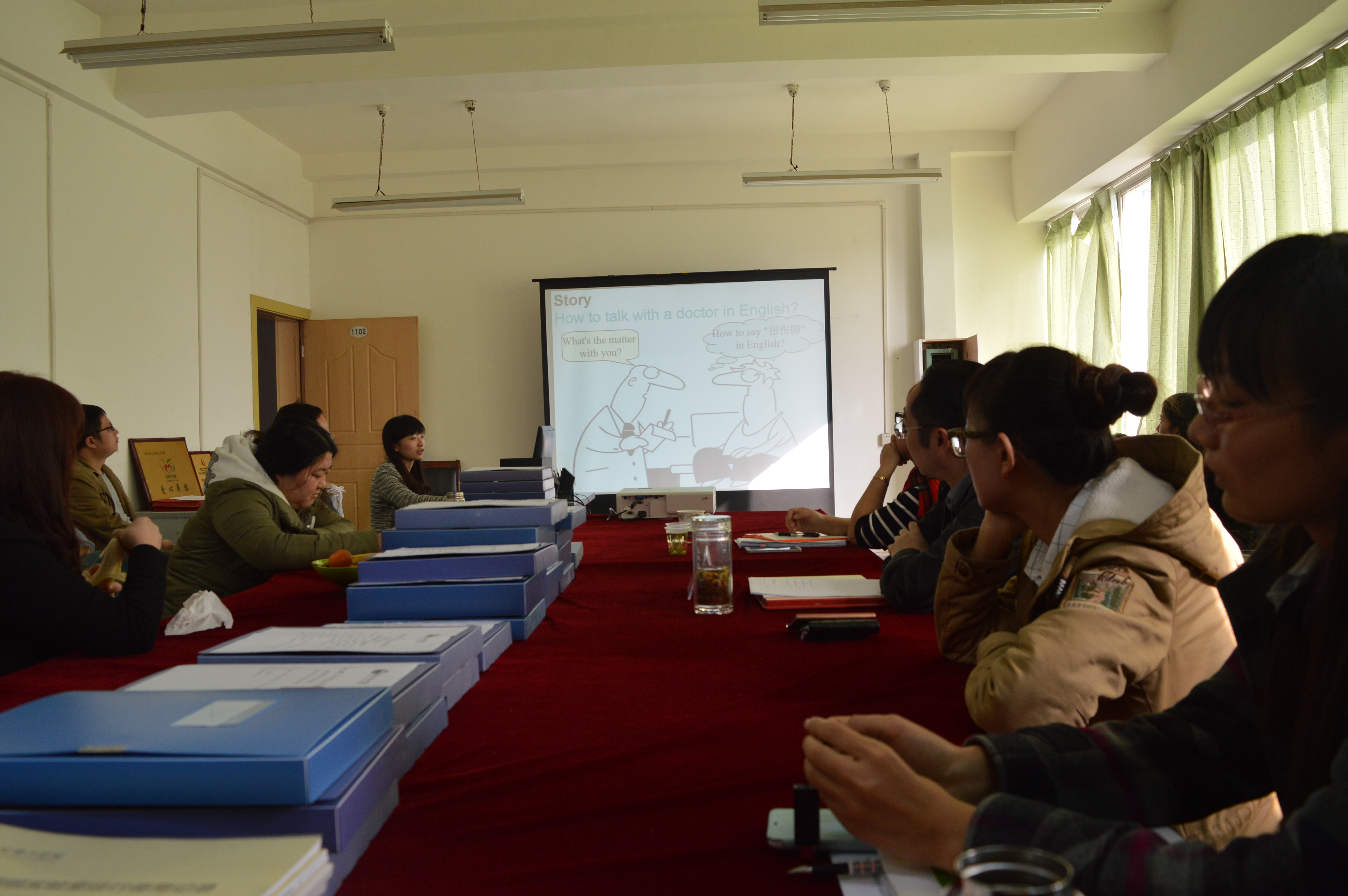2014年11月28日,大外部新进教师在部门会议室进行了试讲。五位新来的教师以贵州理工学院正在使用的英语教材为例,截取不同的主题进行了风格迥异的讲课。有的从讲课材料的特点出发,特色鲜明生动有趣;有的从学生实际情况切入,务实勤恳;有的教师充分利用多媒体设备和社会热点,深入浅出。试讲完毕后,周丽主任充分肯定了新进教师们的热情和积极探索主动钻研的精神,鼓励他们在教学的实践中不断完善自己,更好地激励和引导学生进行外语的学习。随后,大学外语教育部的教师们相互借鉴经验,讨论问题,在自由民主的氛围内对本学期的英语教学进行了交流与总结。
