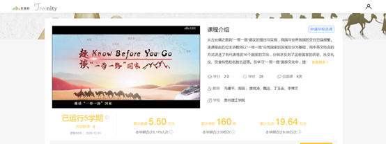 该课程以中英文相结合的方式讲述了“一带一路”沿线有代表性的16国家个国家的文化,分别涉及到了这些国家的历史、社交礼仪、饮食特色和名胜古迹等等。5位主讲教师教学风格有趣易懂,让大家在轻松学习英语的氛围中加深对世界的认识。