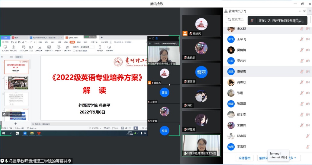 本网讯(外国语学院 王雪丽)秋风送爽育桃李,丹桂飘香迎学子。由于受疫情影响,外国语学院38名2022级新生克服疫情影响,顺利进行线上学习模式,于9月7日至9月9日通过腾讯会议进行线上入学教育。