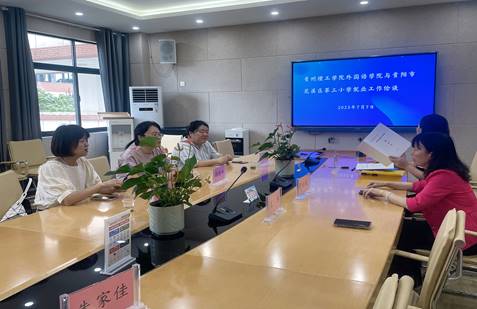 本网讯(外国语学院 单李欣)2023年7月7日,贵州理工学院外国语学院一行到贵阳市花溪区第三小学开展外国语学院英语专业实习基地挂牌暨英语专业学生就业推进会,贵阳市花溪区第三小学贾佐敏校长及相关领导和老师、外国语学院党政负责人及教学科研科负责人参加授牌仪式及交流座谈。