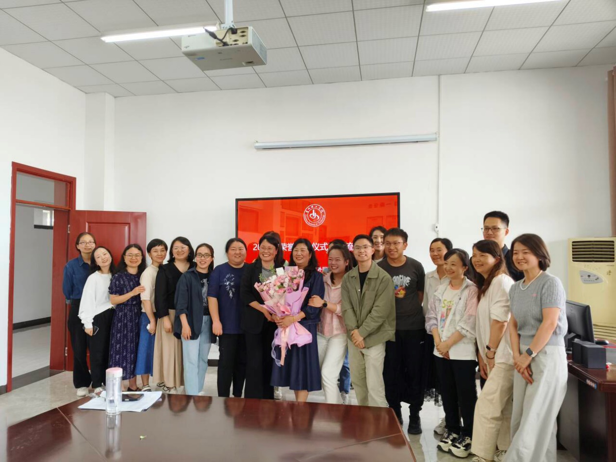 刘春芳老师于2013年来到学院语言实验中心工作至今,工作认真负责,在平凡的岗位上始终坚守与奉献。仪式上,学院党政主要负责人为刘春芳老师送上鲜花和荣休纪念品,并合影留念。