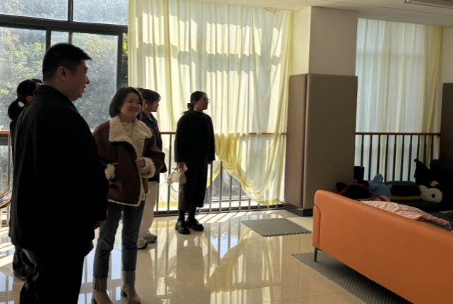 座谈会结束后,蔡俊一行实地考察了我院楼道文化建设和“一站式”社区建设情况。