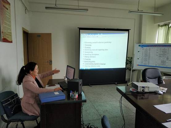 全体教研室成员共同学习并探讨了How to Teach IELTS Reading and Writing(from Dr. Lezhou Su, Beijing Foreign Studies University)一书中中所提到的雅思教学方法及技巧,并指出教师应从任务要求、读写技能、语言知识及元认知策略四个方面来满足学生的需求。此外,大家还一起研读了湖北大学的雅思教学材料Course Design—IELTS Listening Class,重点学习了书中总结的雅思课程教学大纲、教学计划、课堂活动设计的理论基础和设计原则等内容。