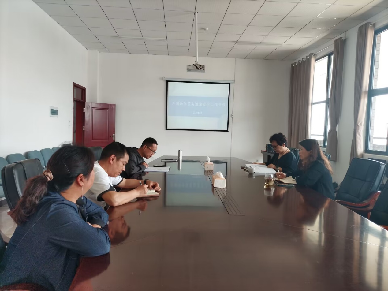 本网讯(外国语学院 王艳)为贯彻落实学校实验室安全及运行管理工作会议精神,进一步加强实验室安全管理工作,5月14日下午,外国语学院在开物楼1524会议室组织召开实验室安全工作会议。会议由学院行政主要负责人主持,学院党总支负责人、语言实验中心负责人和工作人员以及办公室相关人员参加会议。