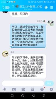 每天早上十点准时开始学习,经过一个小时的学习过后,徐老师都要带领着教研室老师们针对在线直播教学中可能遇到的各种问题进行讨论和交流。比如老师们就如何精细化授课过程、如何更新教学观念、如何让大学英语的听说读写译等各个方面都得到协调发展、如何加强在线教学中的师生沟通和互动等方面进行了讨论和学习,老师们各抒己见,学习气氛热烈。